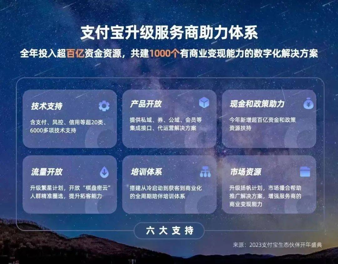 在经历了一段时间的摇摆后,支付宝更加坚定了开放的决心。通过小程序、生活号、直播等创新功能与服务,支付宝为商家提供了更多与用户互动和运营的方式。与此同时,支付宝还加大了对服务商的扶持力度投入百亿级资金资源支持并帮助服务商增加营收。对于中小服务商支付宝还通过技术支持、产品开放、培训体系、流量开放、现金和政策助力、市场推广资源等支持帮他们实现冷启动。