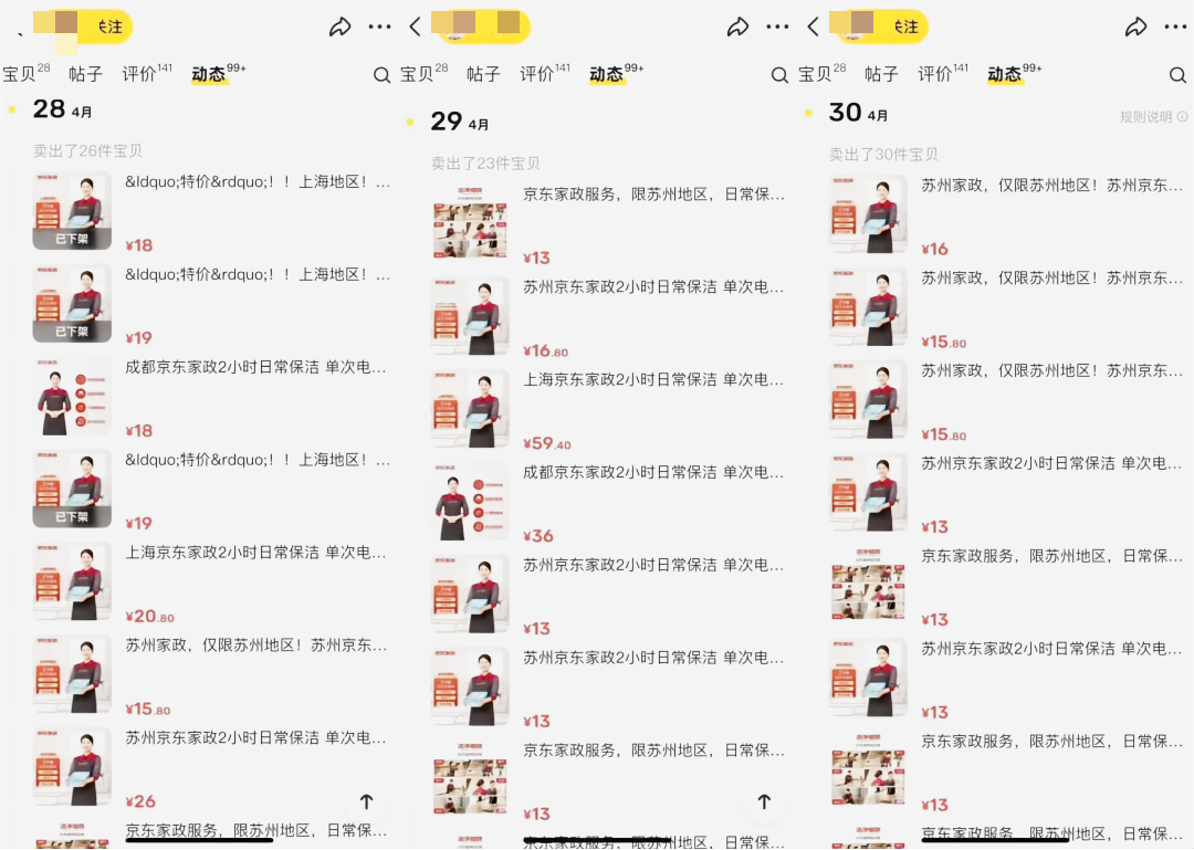 你可以去京东购买这些带有家政券的商品,然后将家政券在闲鱼等平台上以每张40元左右的价格出售。假设你使用多个京东账号购买,每个账号下100份订单,你就能轻松获得大量家政券。而那些买回来的商品,如洗衣液等,你可以半价处理掉,或者通过其他方式回收成本。