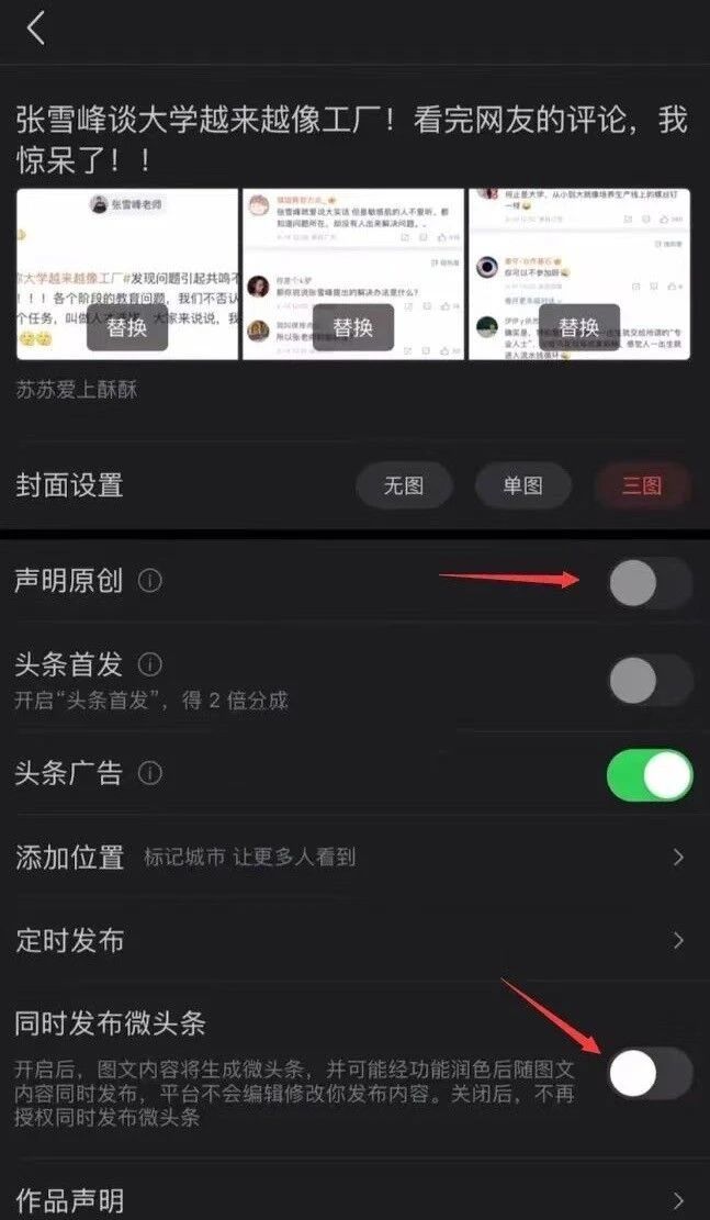 发布头条时,记得打开原创和头条广告,这样你的收益才会更高哦!同时,关闭发布到微头条的选项,因为那里的收入相对较低。设置好以后,直接发布就OK啦!