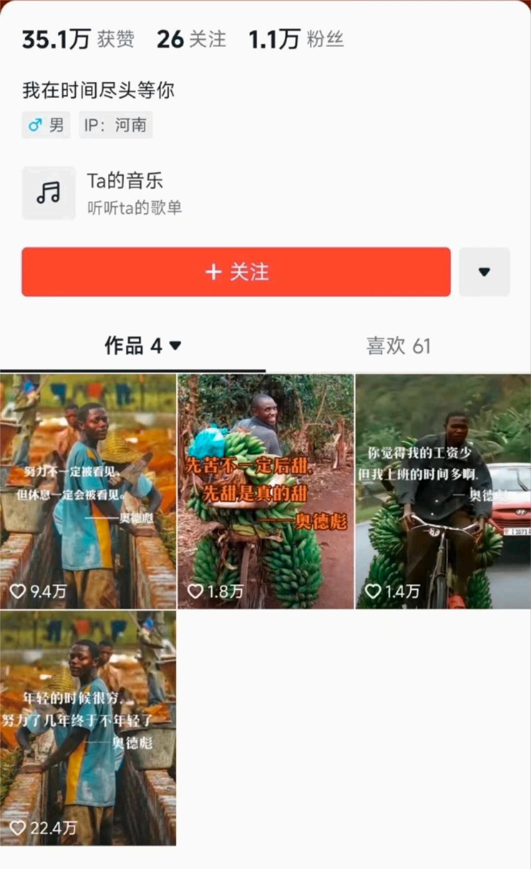 奥德彪,一个源自非洲山路上骑自行车的男子,他拉着几百斤香蕉,疾驰在崎岖的路上。这个画面出自纪录片《世界上最危险的道路》,但经过网络上的幽默加工,奥德彪的形象变得极具魔性,他的笑容和坚韧的形象迅速走红网络。🚲🍌