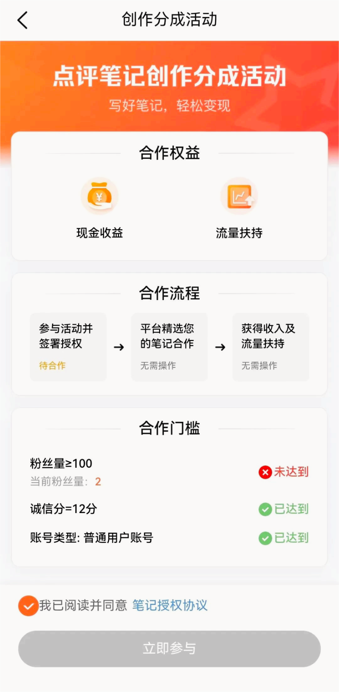 2. 开通分成:三步走,进“我的”-“笔记达人中心”-“创作分成活动”,门槛低,达标快!
