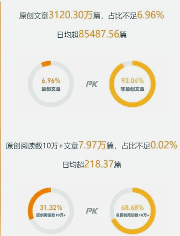 - 公众号文章的原创度要求相对较低,2023年数据显示,原创文章仅占7%,非原创文章高达93.04%。这意味着,即使是AI改写的非原创内容,也有其生存空间。