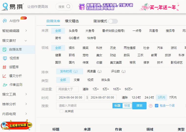- 通过易撰等平台的爆文库,选择同类型文章进行参考,提高创作效率。