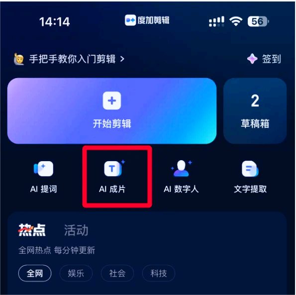 - 度加剪辑,自动生成:将改写后的文案上传至度加剪辑,AI成片功能让视频制作变得简单快捷。