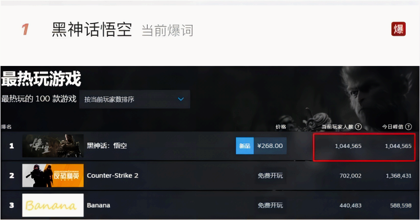 🌟 国产游戏巨制《黑神话:悟空》前几天震撼上线,短短几小时,便在全球游戏圈掀起滔天巨浪!Steam平台在线人数狂飙至百万,直接碾压《CS2》,登顶热门榜首,这热度,简直烫手!🔥