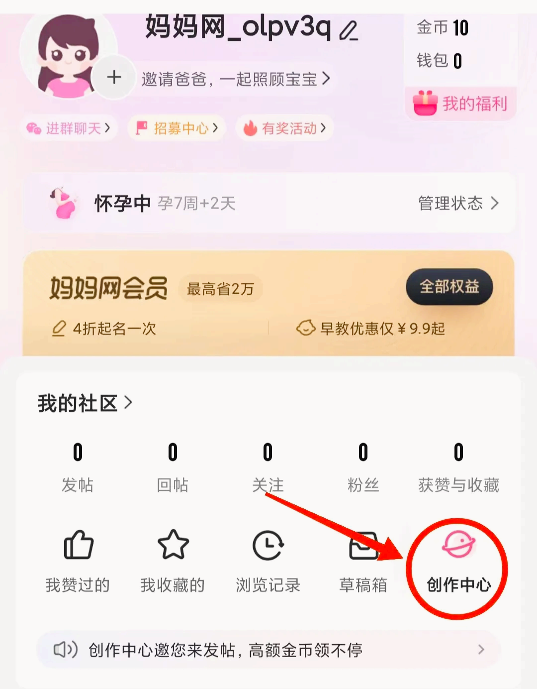 进入APP后,点击首页右上角的头像,进入个人中心。在“我的社区”里找到“创作中心”,这里就是你的赚钱宝地了!任务种类繁多,包括“新人任务”、“每日任务”等。想要解锁更多高级任务,还可以努力成为妈网红人,进入“合作广场”。
