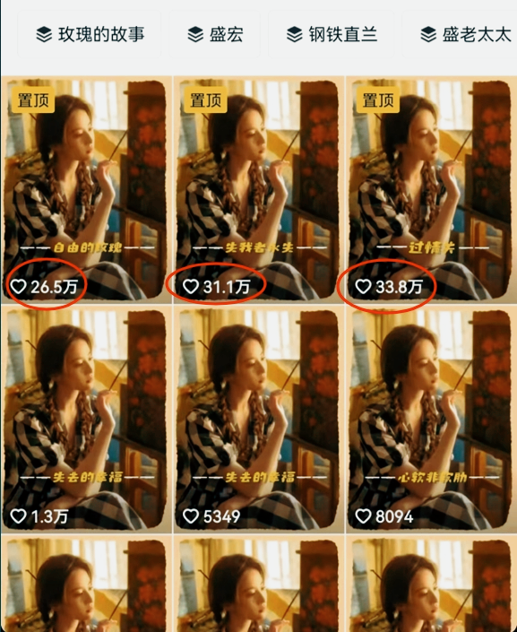 视频画面也不能少啊!找到《玫瑰的故事》里那些与文案相匹配的片段,录屏也好,购买剪辑好的片段也罢,总之要拿到高质量的素材。