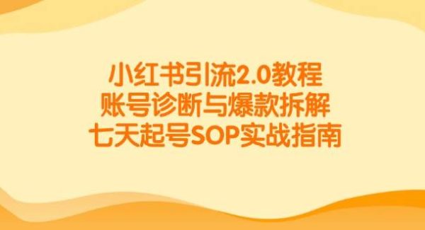 小红书引流2.0教程,系统讲解从账号搭建到爆款内容生产的全流程,涵盖账号诊断、笔记发布、对标账号分析、违规规避、优质内容创作、爆款拆解、7天起号SOP、导流禁言解决方案及封面优化等核心模块,适用于从新手到进阶的运营需求。